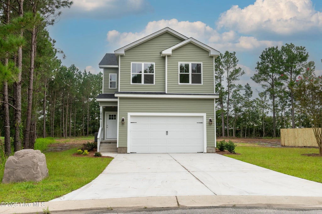 This beautifully built 3-bedroom, 2.5-bath new construction home sits on nearly half an acre at the end of a quiet cul-de-sac, offering the rare combination of peaceful seclusion and everyday convenience. Step inside to a light-filled, open floor plan that lives large, anchored by a designer kitchen featuring classic white cabinetry, eye-catching tile backsplashes, and finishes that strike the perfect balance between timeless and trendy. The spacious two-car garage adds functionality, while the thoughtful layout provides both flow and flexibility for everyday living or entertaining. Located in a private neighborhood with an inactive HOA and access to a shared community dock, this home feels tucked away yet is just minutes to everything—shopping, dining, and downtown Wilmington is less than 20 minutes away. Whether you're a first-time buyer, downsizing, investing, or simply ready for a fresh start close to the coast, 416 Timberwind Lane delivers comfort, character, and the kind of setting that's hard to find.