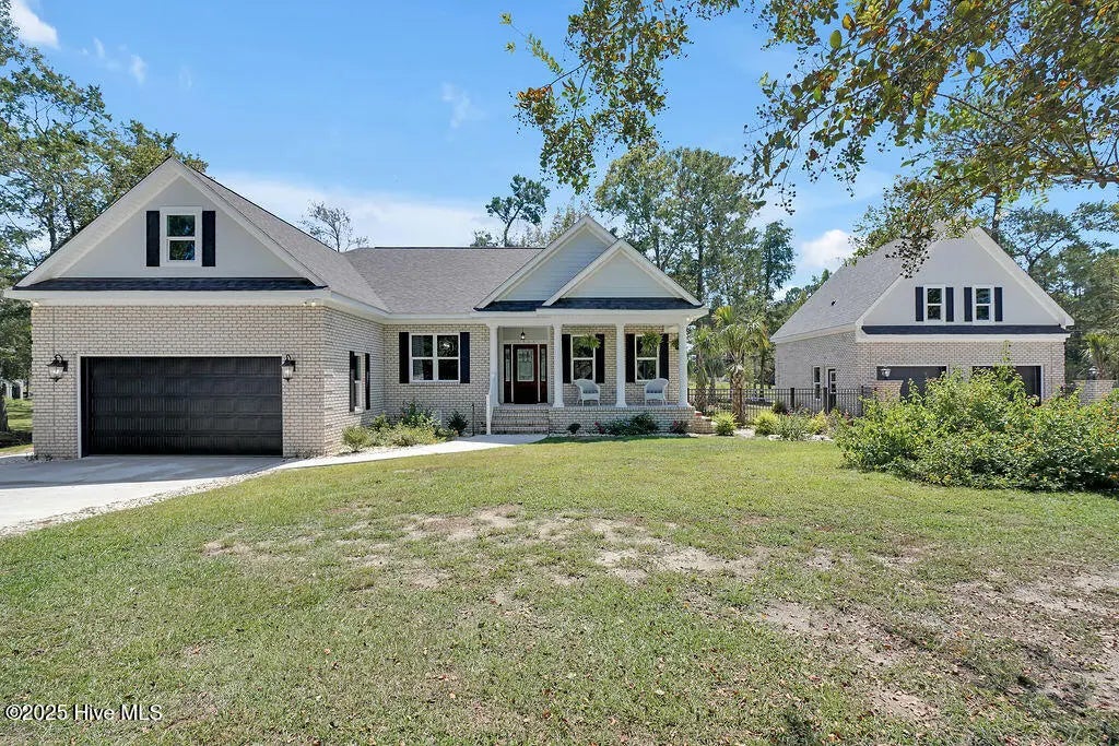 Here is your hidden gem! Tucked away in the beautiful, wooded, Mary Frances Place neighborhood, this brand new home has peaceful views of nearby community ponds. The backyard is ready for your creative ideas with a Trex back deck and plenty of room for your personal touches. The home features an open floor plan with tall ceilings, a dining room, and wood-look luxury vinyl plank flooring in the main areas and primary bedroom. The modern kitchen, with quartz counters, white cabinetry, a double-door pantry, and a breakfast area, includes all appliances. Two guest bedrooms & a full bathroom are on the opposite side of the home from the primary bedroom. The bright living room, with a propane gas fireplace, adjoins the screen porch with views of the ponds, fountains, & mature trees. The primary bedroom includes a sitting area, a large walk-in closet, direct access to the screen porch, and tranquil pond and fountain views. The primary bath includes a jetted tub, a walk-in shower, and a private water closet. There are upgraded light fixtures and ceiling fans throughout the home. The large bonus room over the attached 2-car garage features a half bath and is heated & cooled by a separate mini split HVAC system, making it a great space for overnight visitors. The property also features a detached 2-car garage, also with a room over the garage (approx. 500 square feet not included in the total square footage). Prior to closing, this space will be converted into a bonus room, a half bath, and a kitchenette with cabinets, sink, dishwasher, stove, and a small refrigerator. A glass door leads to a balcony with backyard & pond views. What a wonderful space as an office, a workshop, or an art studio! Detached garage includes a back patio and an extra-wide rear utility door for your golf cart, mower, and beach toys. Mary Frances Place is conveniently located near shopping, dining, medical offices, and only a short drive to Downtown Wilmington, Southport & area beaches.