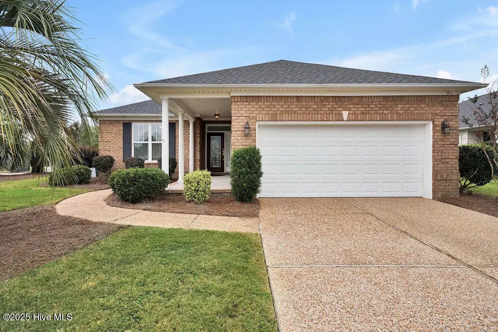 Located in Waterford of the Carolinas, a gated, water-oriented community, this brick home offers 3 bedrooms, 2 full bathrooms, and a bright glassed-in porch. The main areas provide an open floor plan and hardwood floors. In the kitchen you will find Corian countertops, tile backsplash, stainless-steel appliances with the refrigerator included, and an abundance of cabinets for storage. The focal point in the living room is the propane fireplace, a perfect space for entertaining. The primary suite includes an illuminated trey ceiling, walk-in closet, garden tub, separate shower, and a double quartz vanity. The two additional bedrooms include ceiling fans with lights and ample closet space. A renovated guest bathroom has been enhanced with a ceramic tiled walk-in shower with sliding glass doors, and a quartz vanity. There is a laundry closet with shelving in the hallway, and the washer and dryer convey. The 2-car attached garage has pull-down steps leading to the partially floored attic storage space. Window blinds (2'' white) are found throughout. The HVAC System was replaced in 2025, and the Roof in 2022. Waterford amenities include Kayak Launch; Clubhouse and Pool; Tennis, Pickleball, and Bocce Courts; Playground. Pathways lined with lush plantings meander along the waterways that lead to beautiful Osprey Lake, all offering habitat to many different waterfowl. Enjoy the natural beauty and serenity of the outdoors and meet new friends through the many activities and cultural offerings at the enhanced Clubhouse. Waterford of the Carolinas is one of the Wilmington area's premier communities and was awarded the Community of Excellence in 2017 and 2019. Only a short drive to shopping & restaurants. Historic downtown Wilmington is 15 minutes away, and you'll be on Wrightsville Beach in less than 25 minutes!